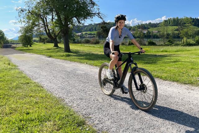 Das E-Bike ist schwer und schnell. Wie man es trotzdem sicher fahren kann, zeigt Kathrin Stirnemann. Sie ist Weltmeisterin auf dem Mountainbike und WM-Zweite mit dem E-Bike. Die wichtigsten Tipps für sicheres Bremsen, Kurvenfahren und steile Auf- und Abfahrten.