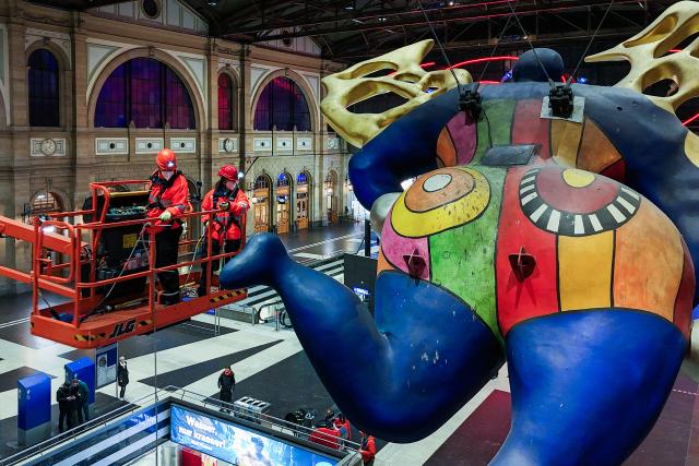 Mona Vetsch reinigt den Schutzengel von Niki de Saint Phalle.