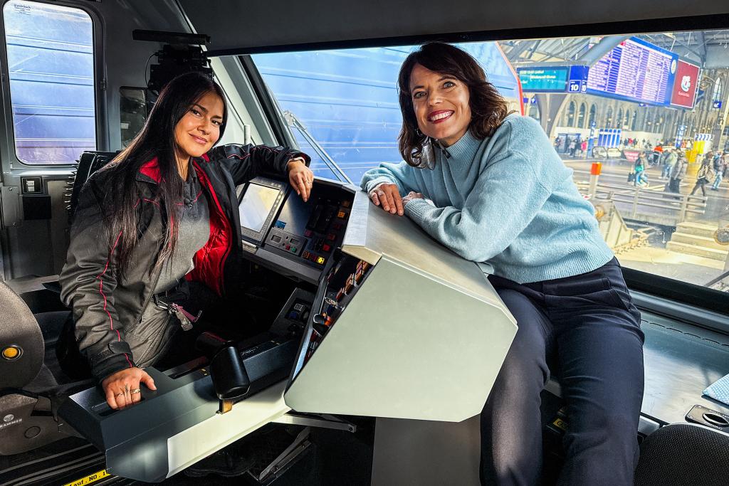 Mona Vetsch (l.) mit Lokführerin Engela Hegelbach (r.) am Hauptbahnhof Zürich
