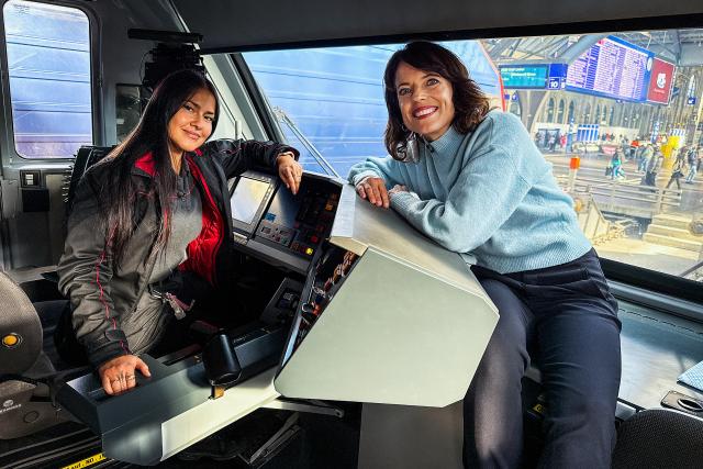 Normalerweise ist Lokführerin Engela Hegelbach (l.) alleine unterwegs. Dieses Mal darf Mona Vetsch (r.) mit in den Führerstand.