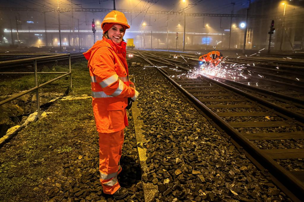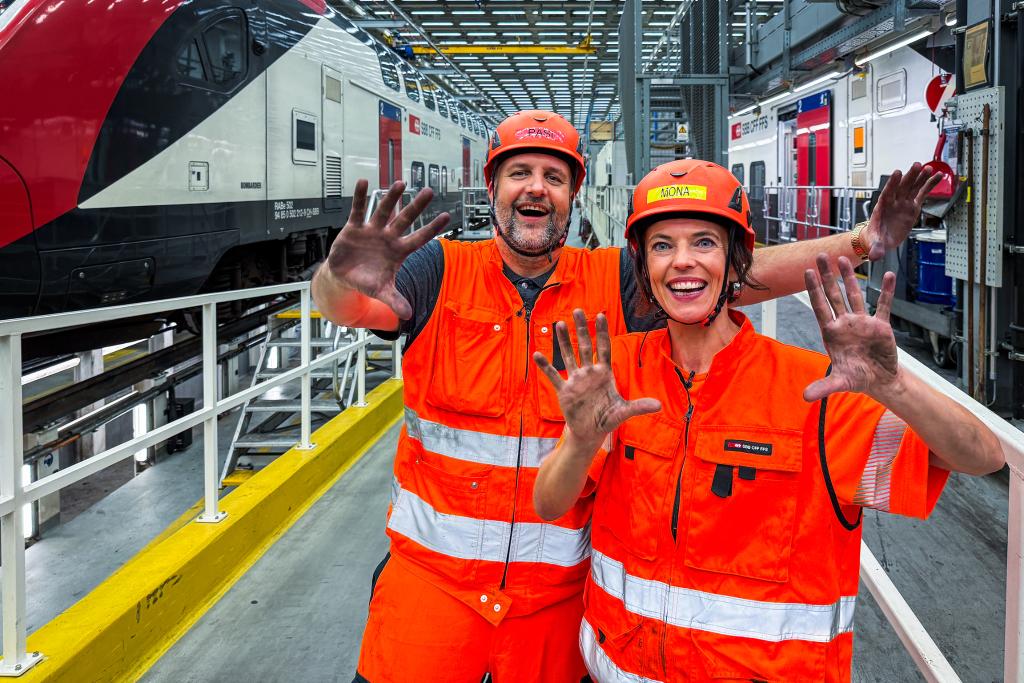Mona Vetsch (r.) mit dem «Train-Doctor» Andreas Passannante in der Serviceanlage Herdern.