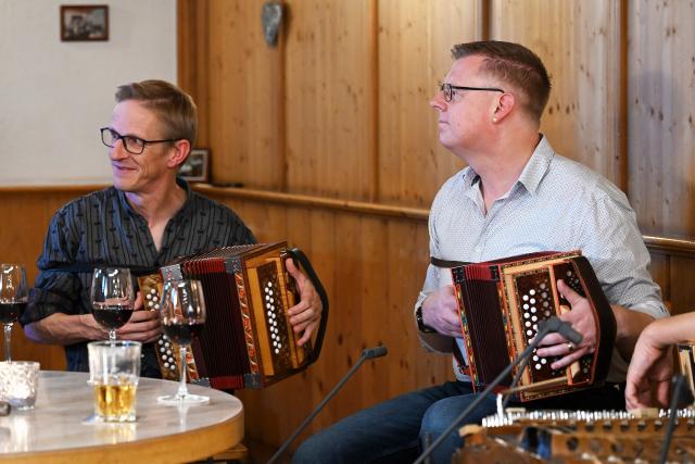 Gastgeber in der «Frohen Aussicht» in Uznach SG ist Martin Kessler. Auch er ist ein begabter Schwyzerörgeler, der regelmässig mit Marcel Zumbrunn aufspielt. Es kann also gut sein, dass auch er bei dieser «Stubete» zum Schwyzerörgeli greift. Und natürlich wird auch Moderator Nicolas Senn sein Hackbrett mit dabeihaben.