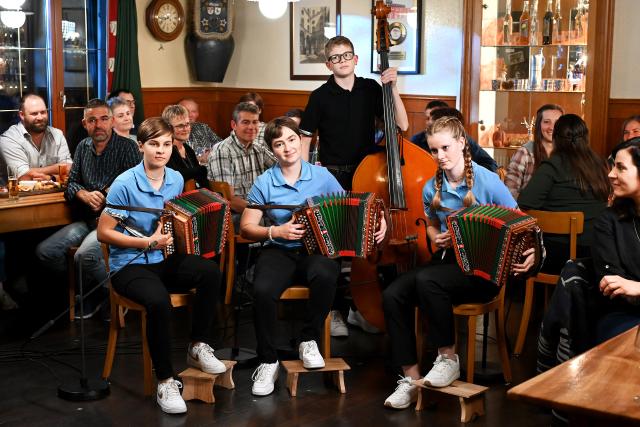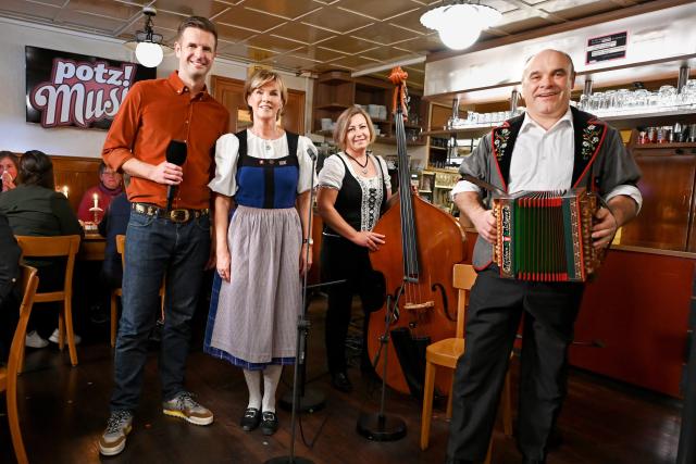Das Appenzeller-Echo – der Name verrät es – reist aus der Ostschweiz an. Die drei Musiker sind aktuell zusammen mit dem Stimmakrobaten Martin O. und dem Schauspieler Philipp Langenegger auf «Appenzeller Welttournee». Zwischen diesen Auftritten machen sie kurz halt bei «Potzmusig». Und ebenfalls aus der Ostschweiz kommt die Kapelle Dürr-Wachter. Aber sie spielen in klassischer Innerschweizer Besetzung mit Klarinette und Akkordeon.