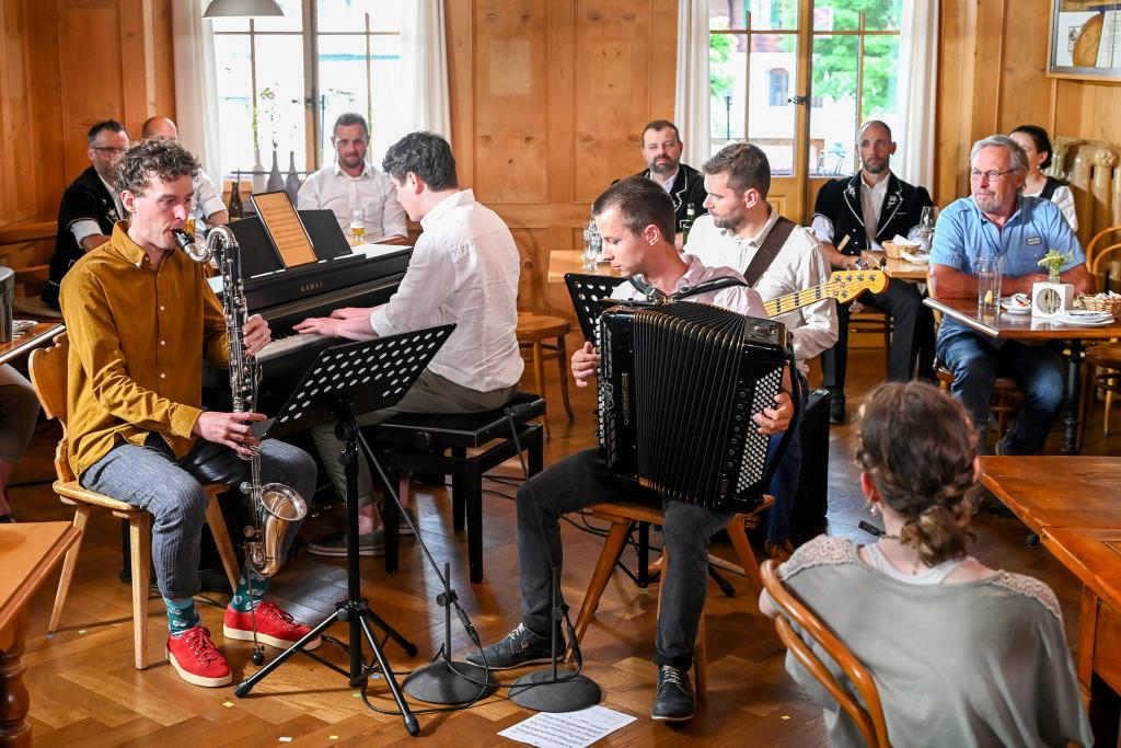 Selbstverständlich kommen auch die Freunde der Entlebucher Blasmusik nicht zu kurz: SöreBläch präsentieren ein Stück ihrer wohlbekannten, hochalpinen Strassenmusik, wie die acht Sörenberger ihren eigenen Stil zu bezeichnen pflegen.