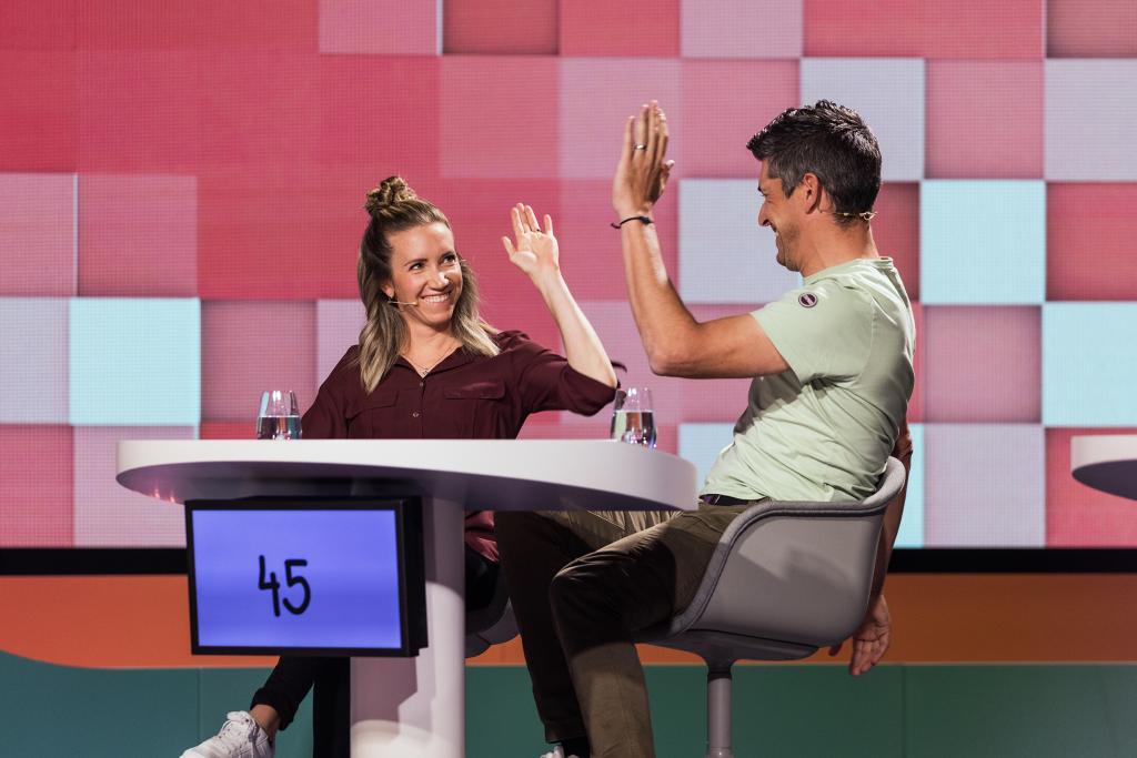 Neben den 100 Menschen sind auch drei prominente Zweierteams mit im Studio. Im Team «Meteo» spielen Sandra Boner und Thomas Bucheli. Das Team «Sport» besteht aus Franco Marvulli und Elisa Gasparin. Und das Team «Gourmet» vertreten Meta Hiltebrand und René Schudel. Auch sie geben Einblick in ihren Alltag – und haben die Aufgabe, bestmöglich einzuschätzen, wie die 100 Menschen auf die Fragen antworten. Das Gewinnerteam erhält 10’000 Franken, die für einen guten Zweck gespendet werden.
