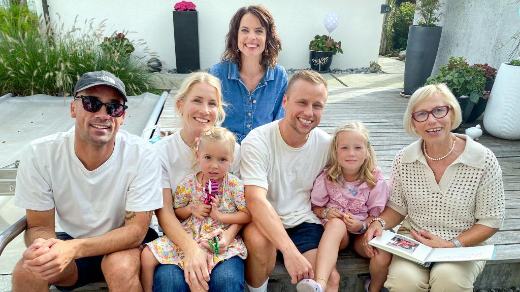 Wiedersehen in der Schweiz: Familie Fitze Matthews mit Onkel Jan, Oma Anneliese Fitze und Mona Vetsch