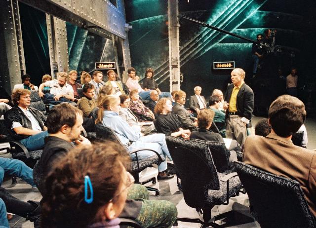 «Limit» löst «Telespiel» ab, 5.1.1989 Zurück Beitrag teilen Bilder limit_2 Chronik 50 Jahre SF DRS Limit. Moderator Max Peter Ammann (Abteilungsleiter Dramatik 1975-1989) im Studio mit Publikum. Kamera re. hinten. 1988 Copyright: SF DRS Lowres Anmelden für Highres Informationen SRF Medienstelle +41 58 135 13 50 medienstelle@srf.ch Zurück