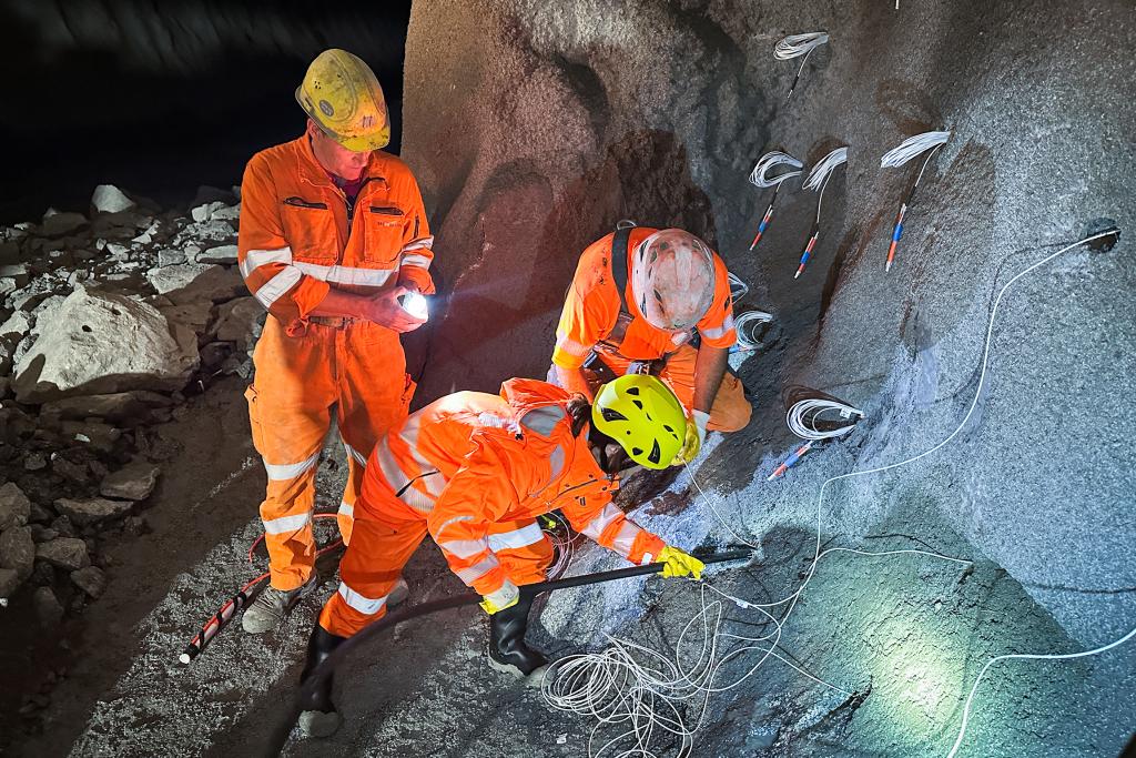 «Dann rufst du Sprengung und zündest!» Mineur Franz Gössnitzer führt Mona Vetsch in den Sprengvortrieb ein. Die 100 Kilogramm schwere, explosive Ladung lassen sie bis ins Mark erzittern.