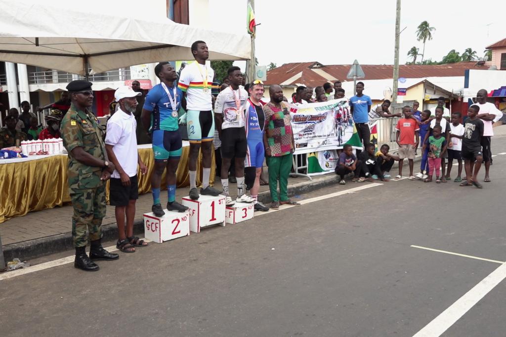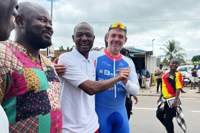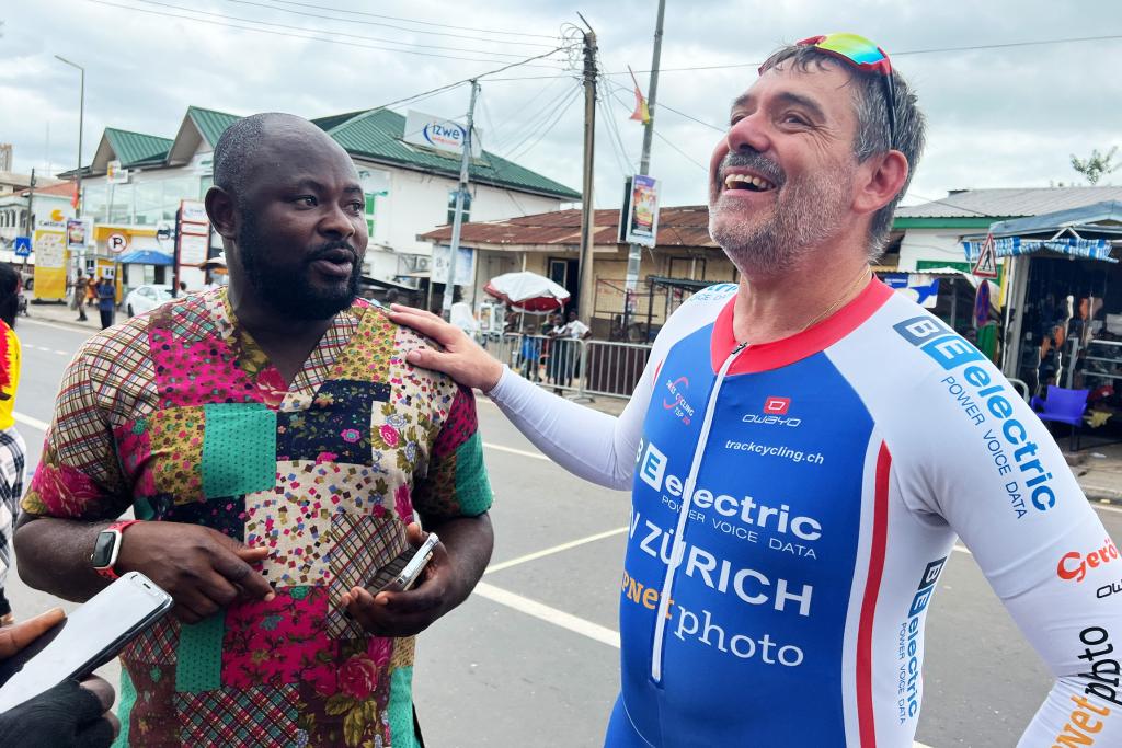 Pädi Ifanger und Mohammed Riyadh, der Vizepräsiden der Ghana Cycling Federation am Velo-Rennen in Ghana.