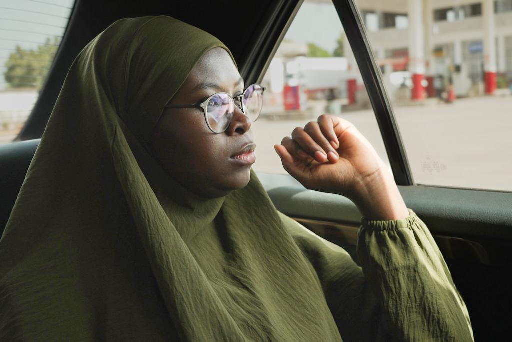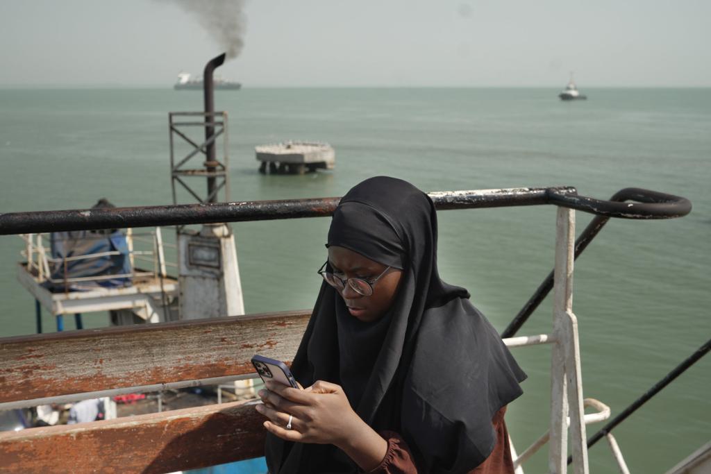 Fatoumatta Sandeng im Auto unterwegs in Serekunda, Gambia, im Dezember 2023