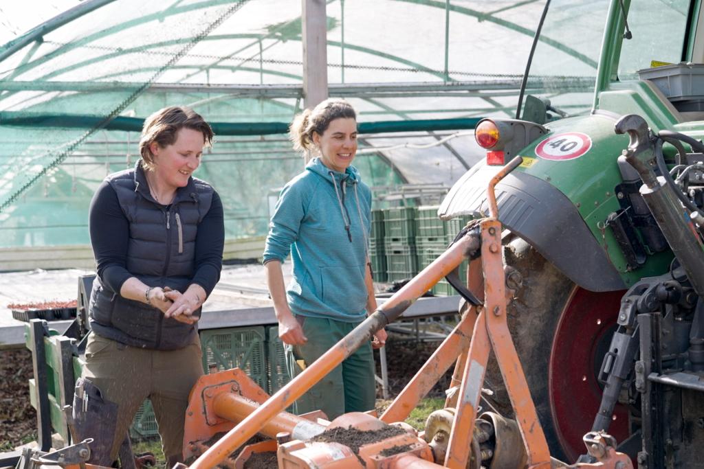 Sarah Dähler (l.) mit einer ihrer Angestellten. Auf ihrem Betrieb beschäftigt sie fünf Vollzeitmitarbeitende.