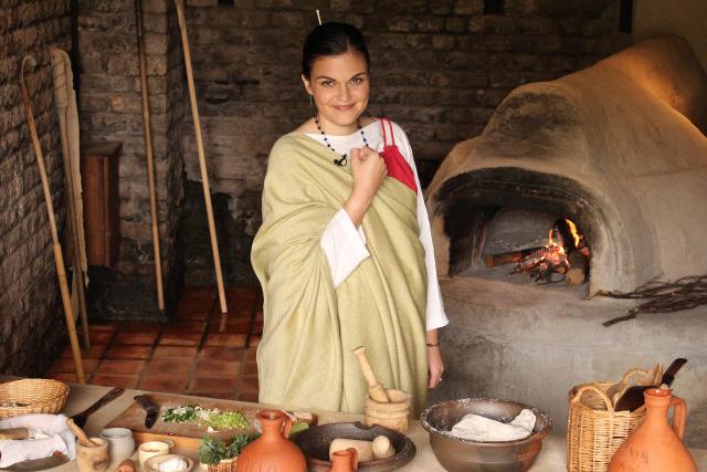 Wein, Aprikosen oder Walnüsse – alles Lebensmittel, die die Römer in die Schweiz brachten. Wie zur Zeit der Römer gekocht wurde, wie das Leben von römischen Familien aussah und welche Rolle die Religion im römischen Alltag spielte, findet Angela Haas in Augusta Raurica und Studen bei Bern heraus.