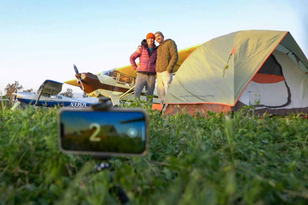 Tobias und Jackie Burch besuchen ein Camping für Flugbegeisterte in Kalifornien.
