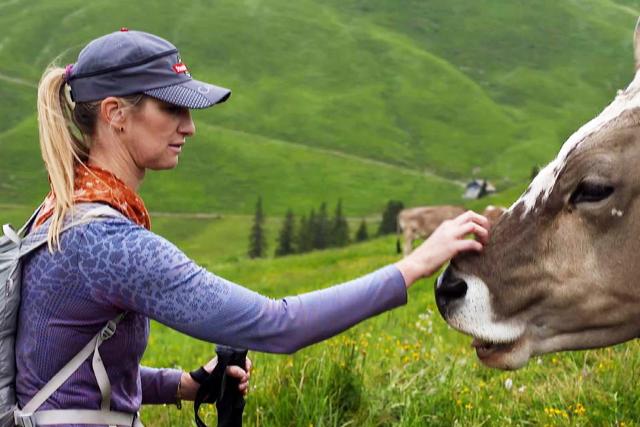 Die Amerikanerin Jackie Burch liebt die Schweizer Berge. Doch ihr Heimweh zieht sie immer wieder zurück nach Kalifornien.