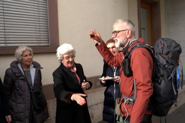 Botschafter Paul Seger mit seiner Frau Colette kurz vor dem Start seines Marsches von Deutschland nach Basel.