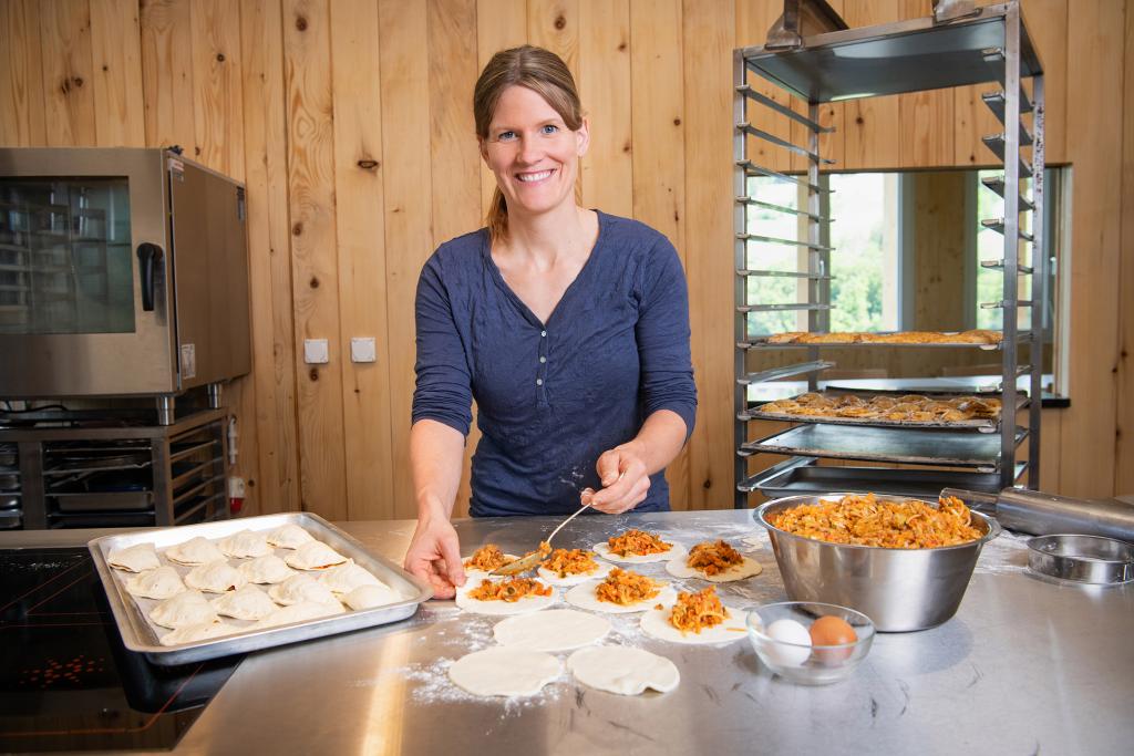 Bevor die Landfrauen nach Oberbalm BE kommen, hat Melanie noch eine vollgepackte Woche vor sich. Zusammen mit Philipp bietet sie seit einigen Jahren «Schule auf dem Bauernhof» an und empfängt jede Woche mehrere Schulklassen, vor allem aus der nahen Stadt Bern. Denen bringt sie den Umgang mit den Tieren und die Landwirtschaft näher. Unter anderem dank diesem Standbein können sie vom eigentlich kleinen Landwirtschaftsbetrieb leben. Dass sie nun die Landfrauen bekochen darf, ist etwas Neues und Einmaliges für Melanie.