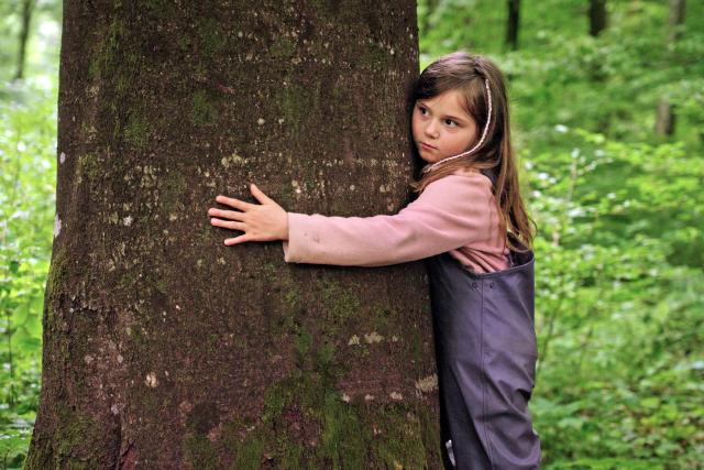 Malin umarmt das letzte Mal ihren Baumfreund.