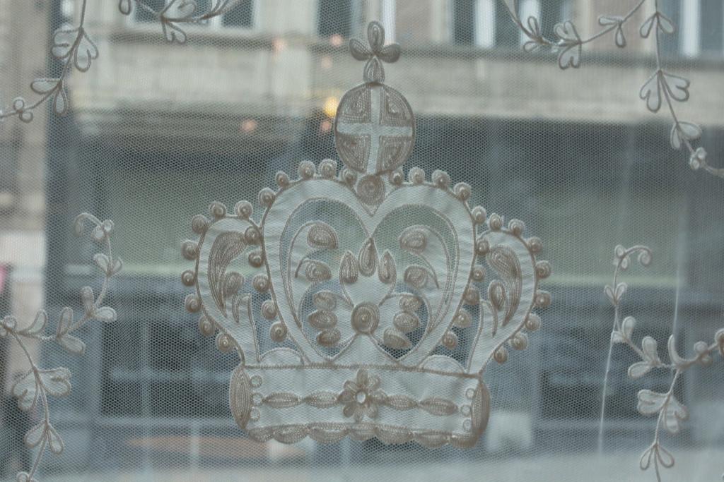 Die Krone als Verzierung ist auf allen Stoffen im Restaurant Kronenhalle zu finden – so auch auf diesem Vorhang.