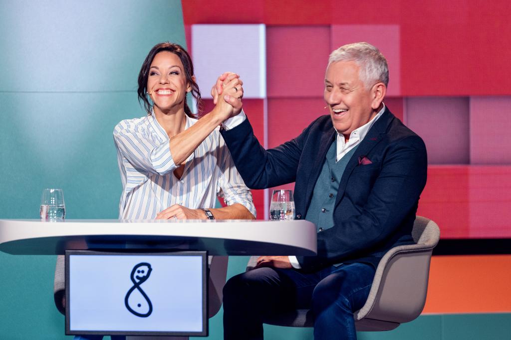 Moderator Claudio Zuccolini und Psychologin Sereina Venzin