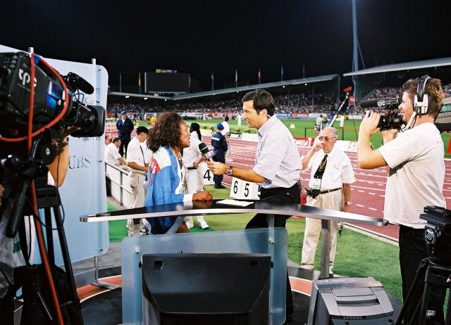 681'000 Zuschauer bei «Weltklasse Zürich», 15.8.2003 Zurück Beitrag teilen Bilder weltklasse_zuerich_2 Leichtathletik Meeting Zürich Weltklasse Zürich 2003 Interview: Moderator Peter Minder interviewt eine Athletin; Kamera re. vorne Copyright: tpc/Christian Wyss Lowres Anmelden für Highres Informationen SRF Medienstelle +41 58 135 13 50 medienstelle@srf.ch Zurück
