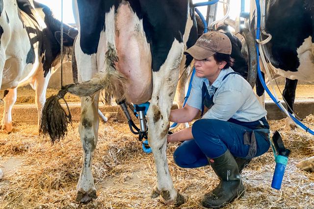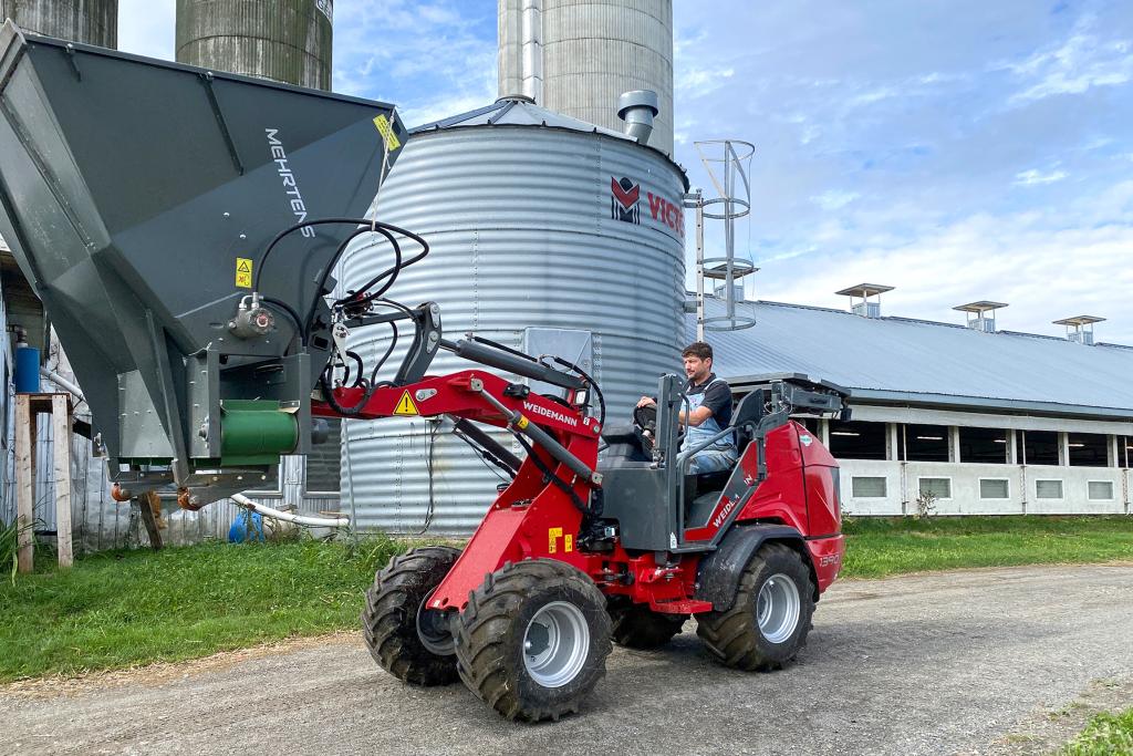 Adrian Steinmann auf seinem neuen Hoflader. Er ist für die Fütterung der Tiere und den Ackerbau verantwortlich.