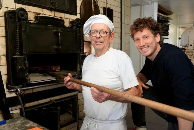 Bäckermeister Christof mit Donat Hofer: Er arbeitet ausschliesslich mit dem Holzofen.