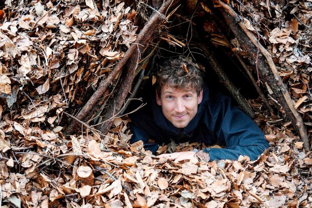 Donat Hofer übernachtet in einer selbstgebauten Laubhütte.
