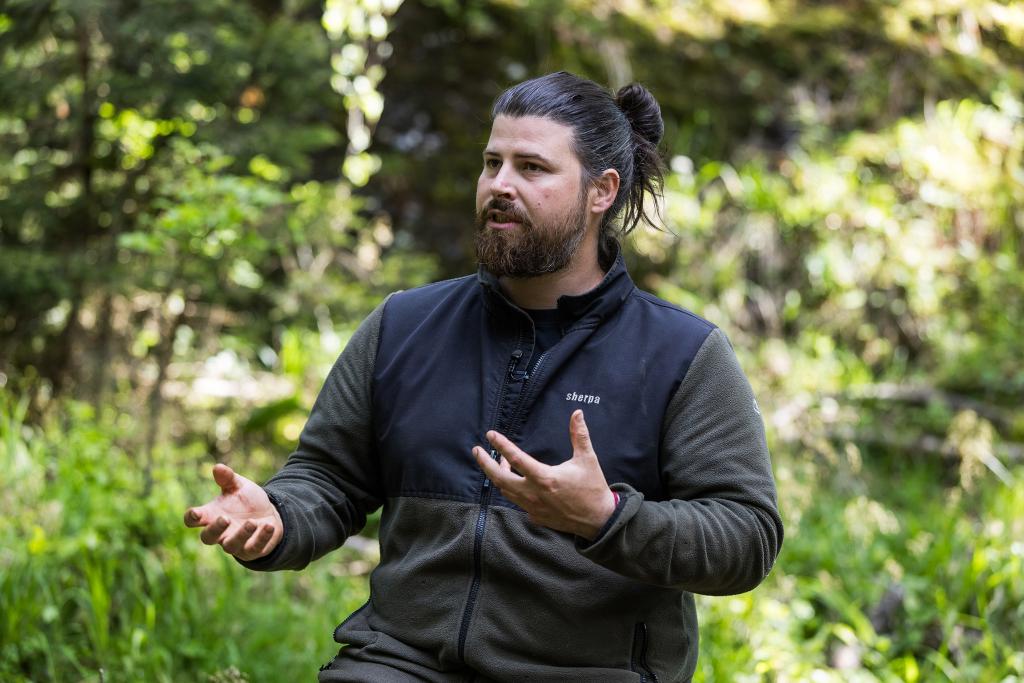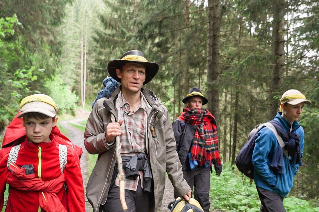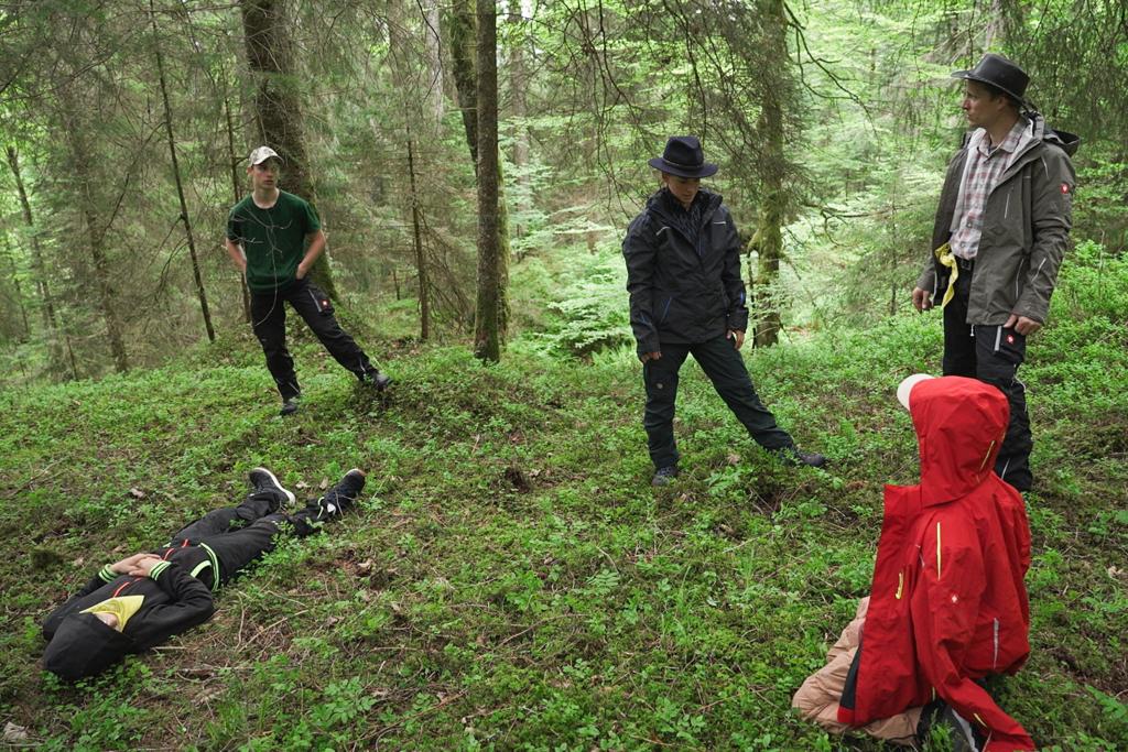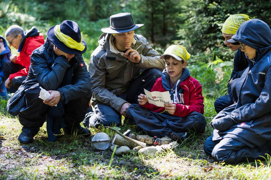 Familie Liechti berät, wo sie ihren Shelter bauen wollen. Im Bild v.l.: Joel (liegend), Jeremy, Deborah, Samuel und Levi