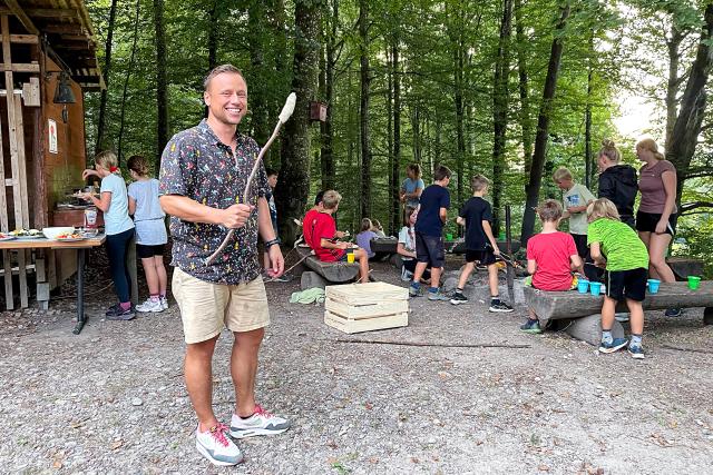 Pause: Jan Fitze im Klassenlager mit der 5./6. Klasse der Schule Thundorf