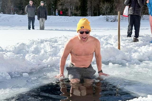 Jan Fitze nimmt ein Bad im Eisloch