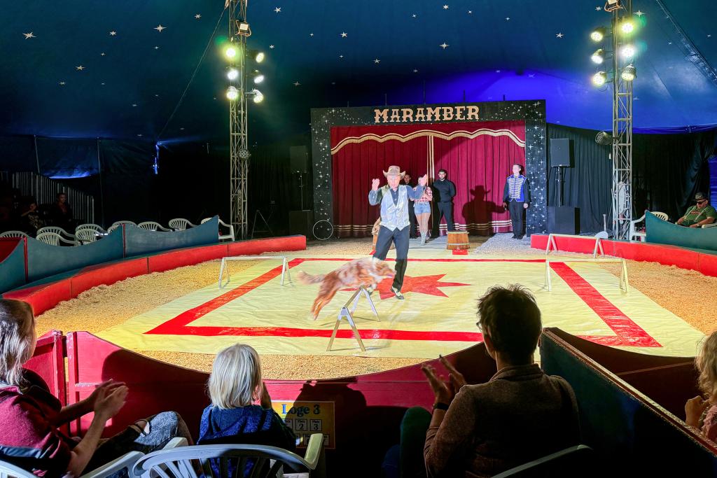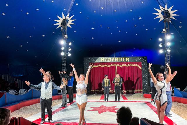 Jan Fitze (l.) und die Artisten des Zirkus Maramber in der Manege