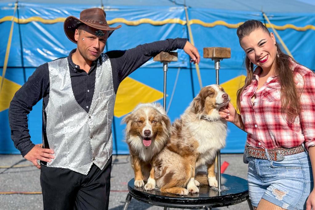 Jan Fitze zeigt seine Hundedressur-Nummer in der Manege