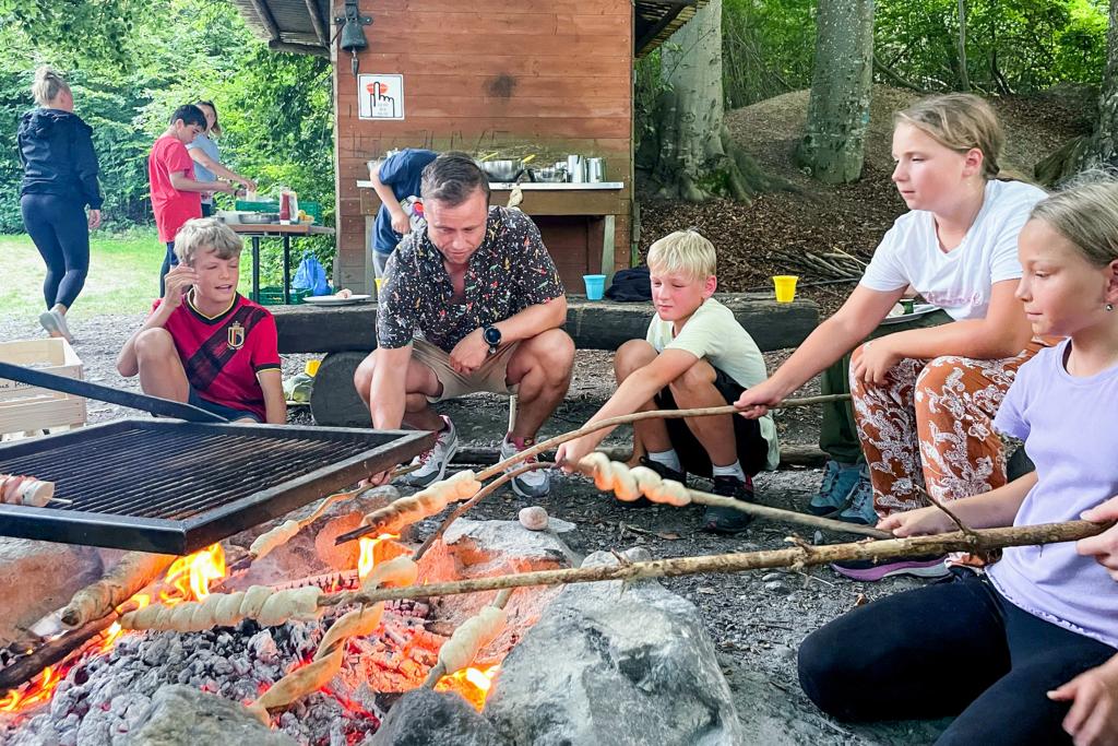 Mittagsrast mit Würstchen vom Lagerfeuer: Jan Fitze im Klassenlager mit der 5./6. Klasse der Schule Thundorf