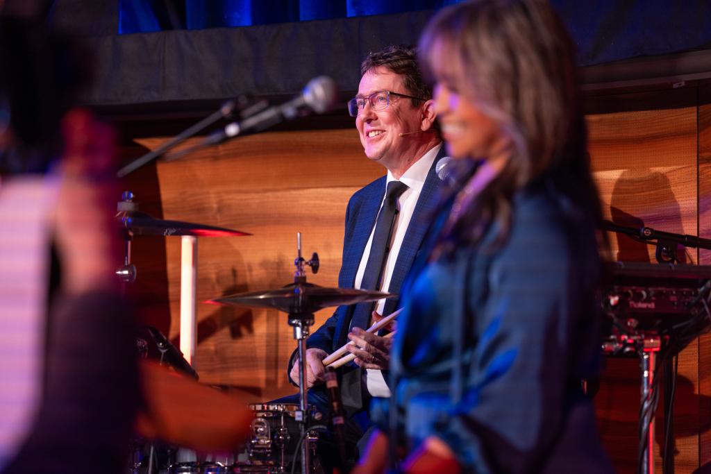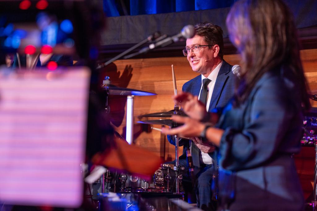 Bundesrat Albert Rösti am Schlagzeug