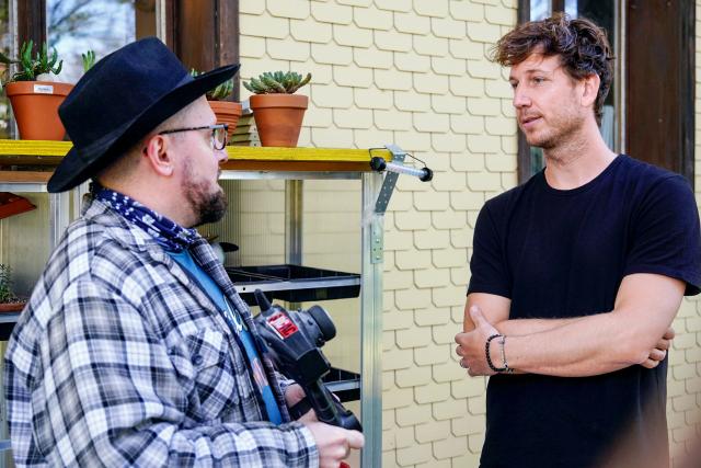 Reporter Donat Hofer (l.) nimmt an einem Kuschelseminar teil.