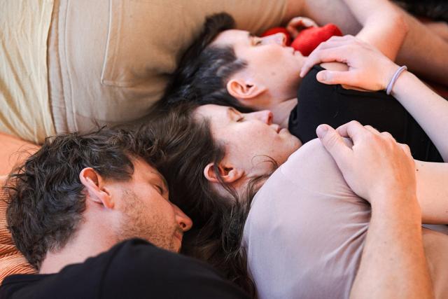 Der Höhepunkt des Kuschelseminars: Ein Kuschelhaufen mit allen Teilnehmerinnen und Teilnehmern