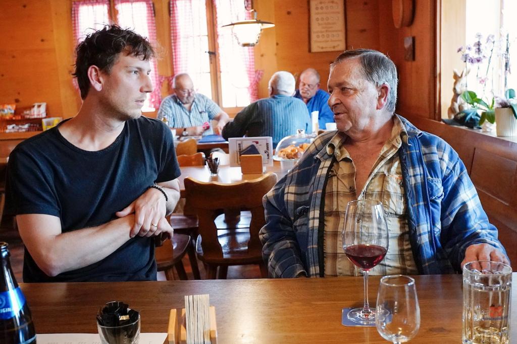 Besuch am Stammtisch in Oberlangenegg (BE): Reporter Donat Hofer im Gespräch mit Christian Fahrni