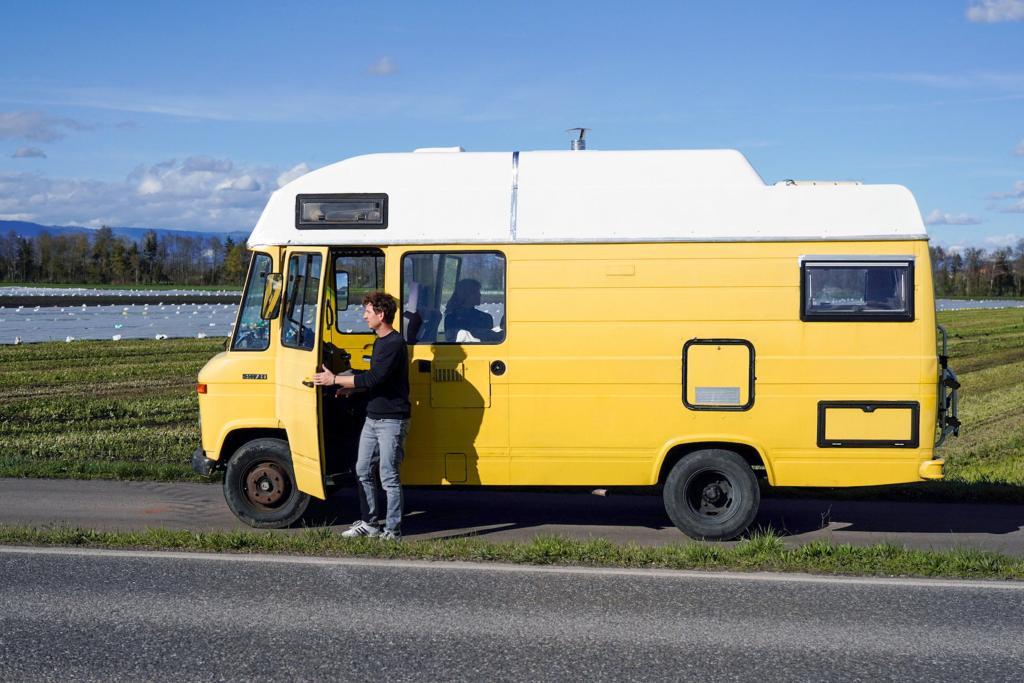Reporter Donat Hofer ist mit seinem gelben Bus unterwegs.