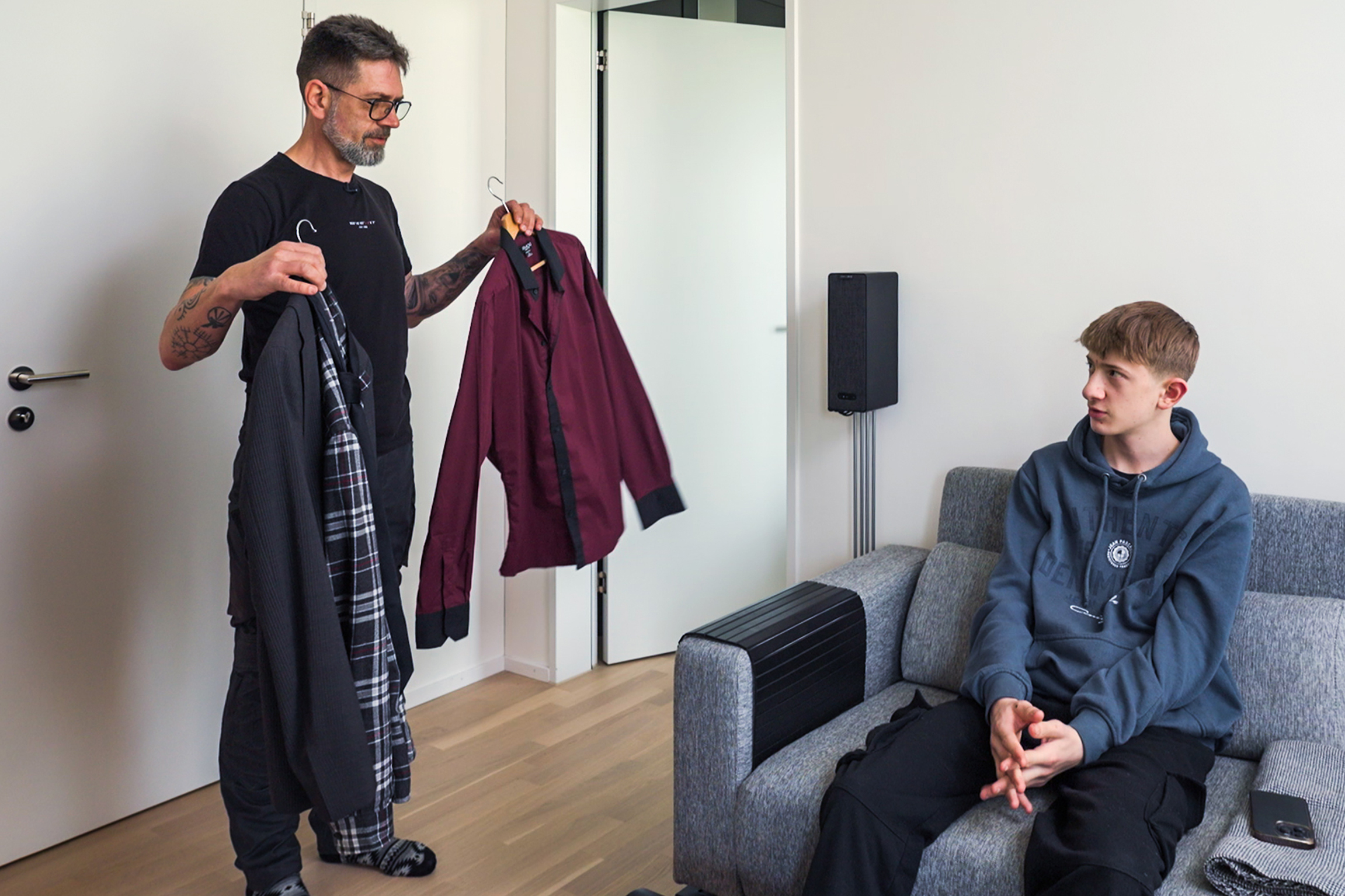 Philipp berät sich mit Nicolas darüber, was er zu seinem Date anziehen soll.