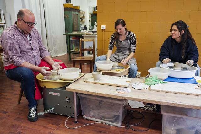 Nicolas (l.) und Bea (M.) im Gespräch mit dem Date