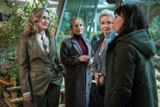 Soll ermittelt werden? Man ist sich nicht einig: v.l. Rachel Braunschweig als Staatsanwältin Anita Wegenast, Anna Pieri Zuercher als Kommissarin Isabelle Grandjean, Heidi Maria Glössner als Rosi Bodmer, Carol Schuler als Kommissarin Tessa Ott