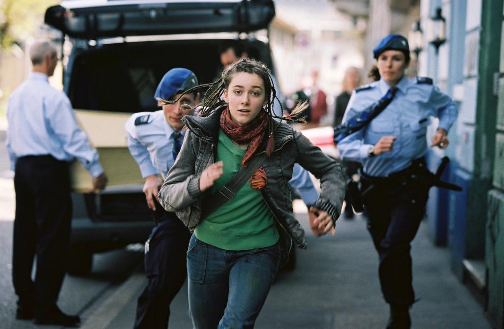 Miriam Stein als Corinna flüchtet vor der Polizei.