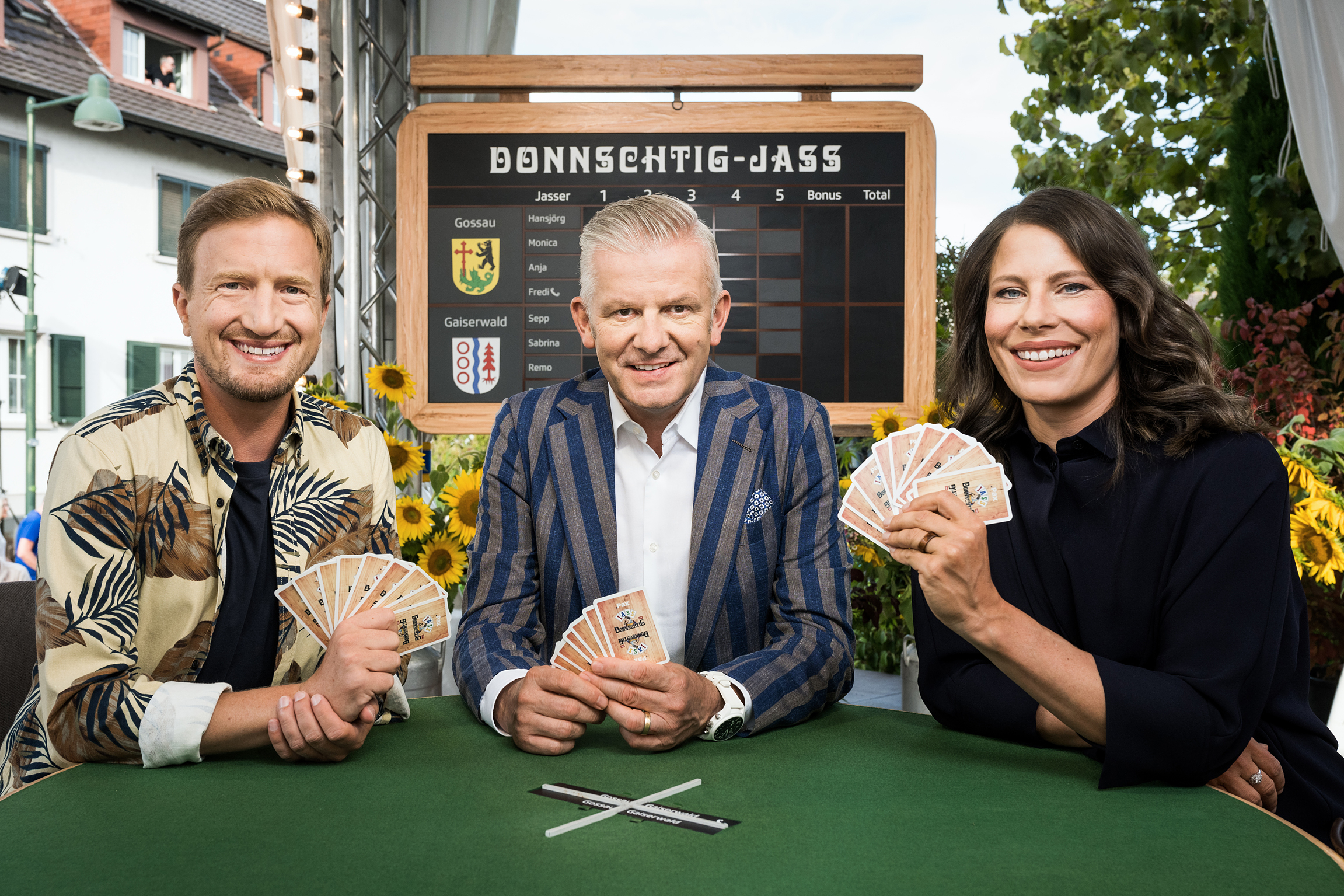 Die 41. «Donnschtig-Jass»-Sommertour neigt sich dem Ende zu. Die letzte Ausgabe 2024 findet am Donnerstag, 15. August 2024, in Glarus Nord statt – unter anderen mit Fabienne und Mario Gyr, Linda Fäh und Bligg. Den Abschluss des Jass-Sommers bildet die erstmalige «Zuegab»-Sendung am Samstag, 17. August. Gäste sind Ursus & Nadeschkin, für die musikalische Unterhaltung sorgen Francine Jordi, Loco Escrito mit Stress, Luca Hänni und Vincent Gross.
