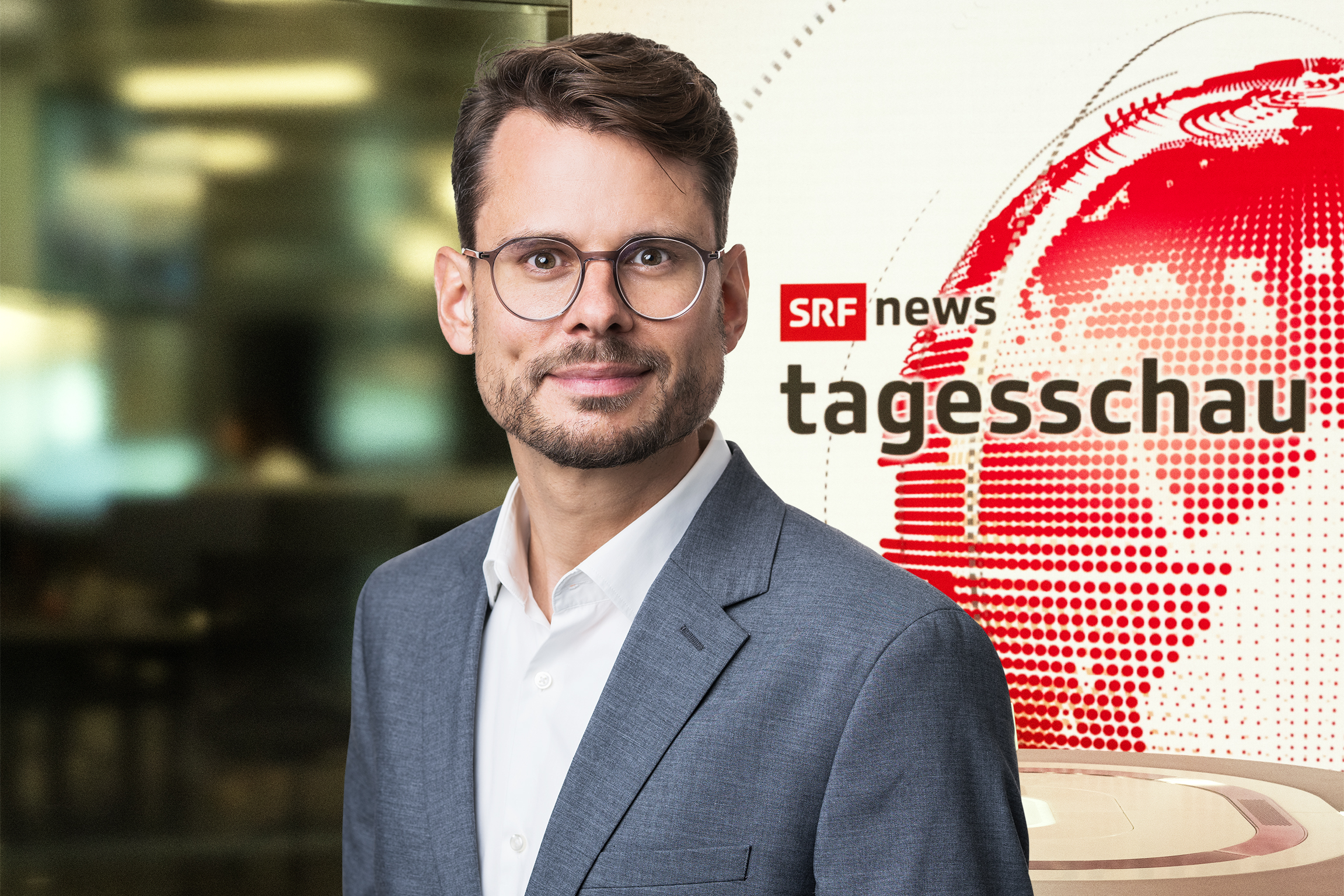 Roger Aebli: «Das tägliche Weltgeschehen in wenigen Minuten wiederzugeben, zu vertiefen und einzuordnen – das ist für mich die Königsdisziplin im Newsjournalismus. Dass ich nun das ‘Tagesschau’-Team als Moderator vor dem Publikum vertreten darf, darauf freue ich mich sehr.»