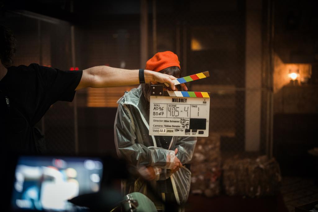 Elisa Plüss als Emilia Dobek hinter der Filmklappe