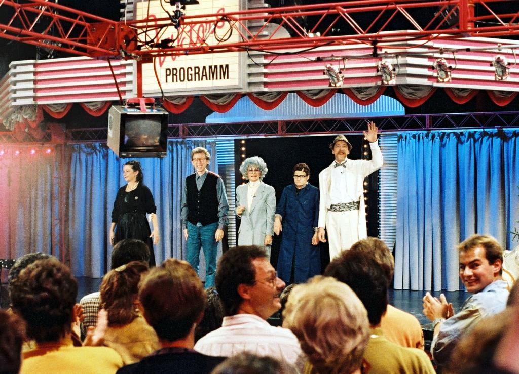 Start von «Viktors Programm», 19.4.1990 Zurück Beitrag teilen Bilder viktors_programm_2 Chronik 50 Jahre SF DRS Viktors Programm, 1990 Moderator Viktor Giacobbo (2.v.li.) und Mitwirkende auf der Bühne Copyright: SF DRS/Heinz Stucki Lowres Anmelden für Highres Informationen SRF Medienstelle +41 58 135 13 50 medienstelle@srf.ch Zurück